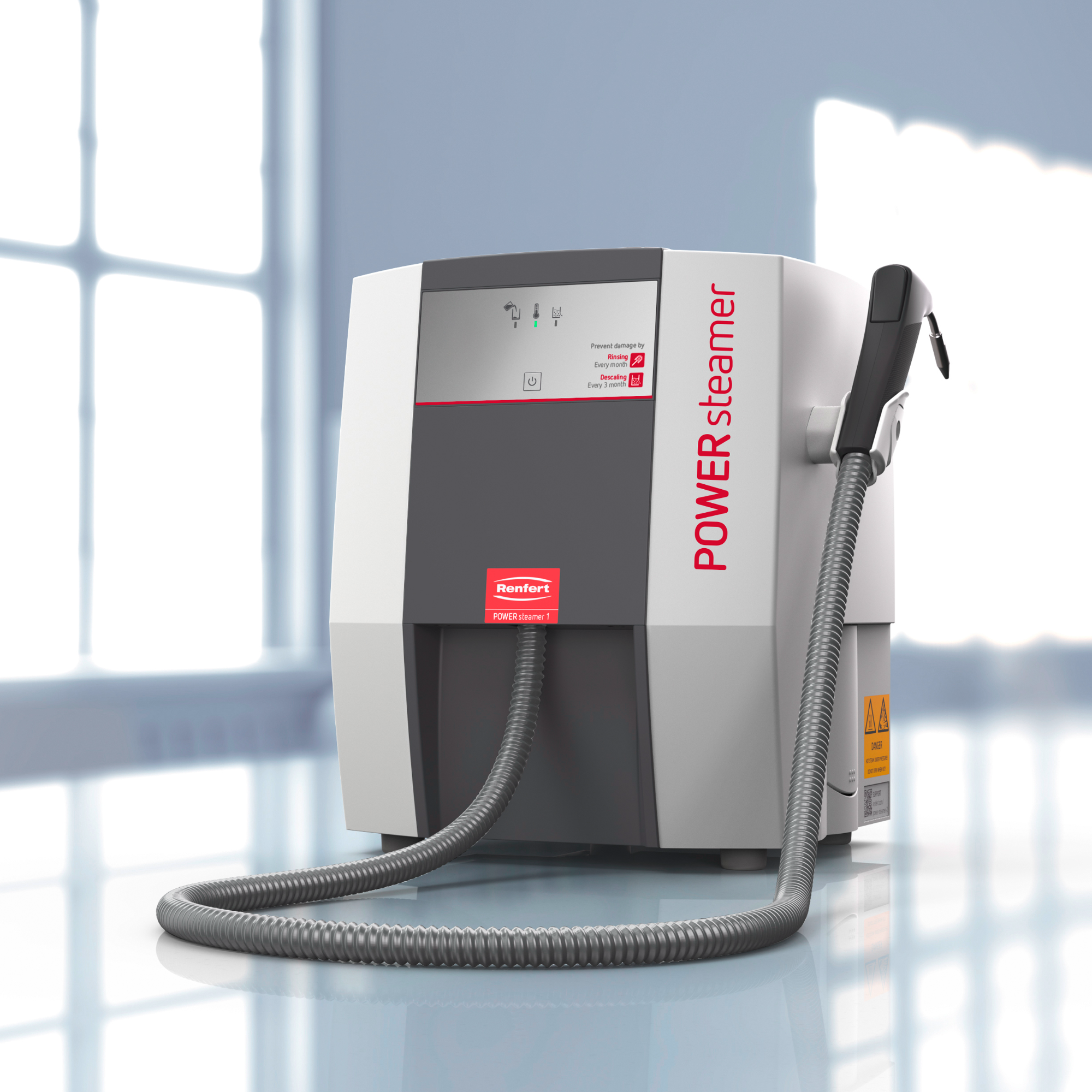 The new, powerful POWER steamer 1 sets new standards in reliability and durability and impresses with its outstanding cleaning performance. Any kind of typical soiling can be easily and effectively removed. The location can be selected flexibly thanks to manual filling.