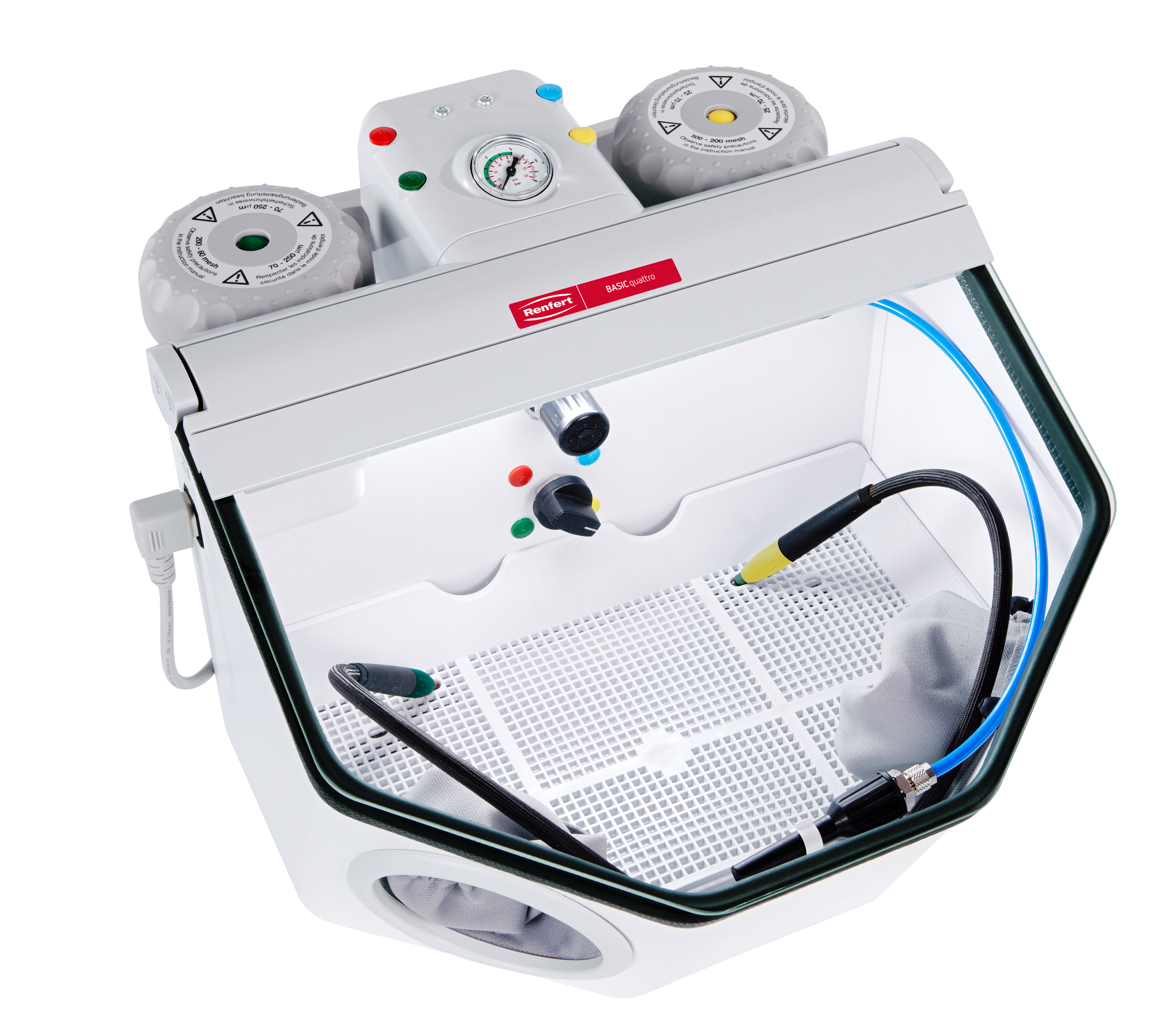• Large sandblasting chamber (20 l) allows maximum freedom of movement.